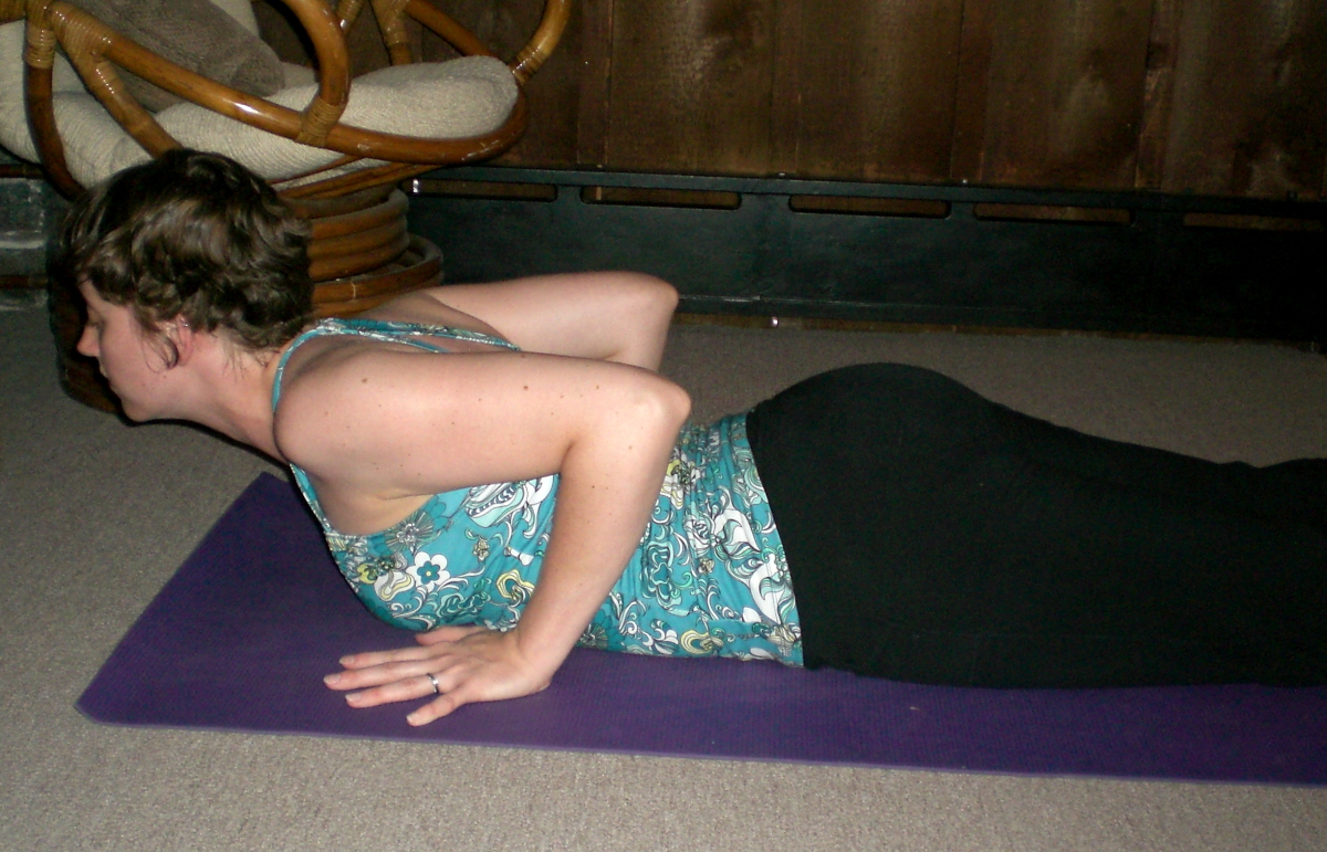- Place the hands lightly on the floor, palm down, under the shoulders. Hug the elbows against the body. Legs are active but relaxed, with the tops of the feet resting on the floor.